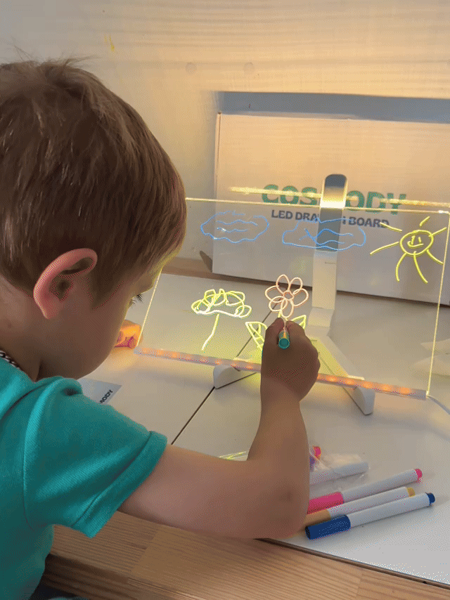 “As a pediatric occupational therapist, I recommend this LED drawing board to help children strengthen fine motor skills, improve hand-eye coordination, and stay focused—without screens. The glowing surface offers instant visual feedback that keeps kids engaged longer, making it especially helpful for children with ADHD, autism, or sensory needs.It’s not just play—it’s therapeutic learning disguised as fun.”
