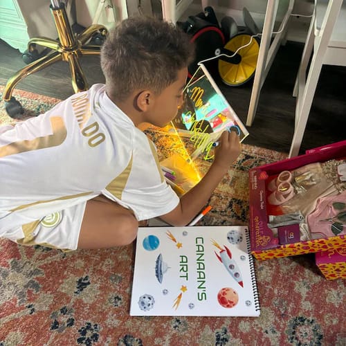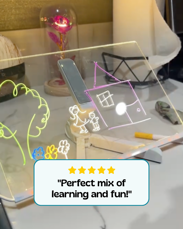 Watch as their simple sketches glow with vibrant LED light, turning into glowing masterpieces. This fun, interactive experience encourages creativity and lets young artists experiment, express, and refine their skills—all while having a blast!